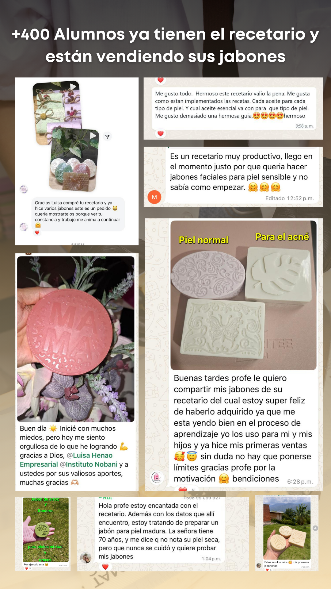 Especializada en jabonería artesanal con la técnica melt & pour, me he dedicado a formar, inspirar y acompañar a cientos de mujeres en Latinoamérica a crear negocios rentables desde casa.